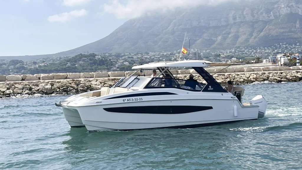 El Aquila sport dispone de un equipamiento de lujo, con dos neveras, sistema de audio, ducha exterior, teca sintética y aseo eléctrico.