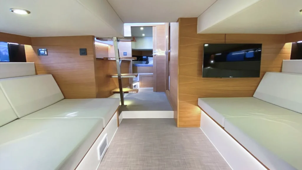 Salon convertible/ cabina en popa con cama triple en forma de U (250 x 300 x 250 cm)