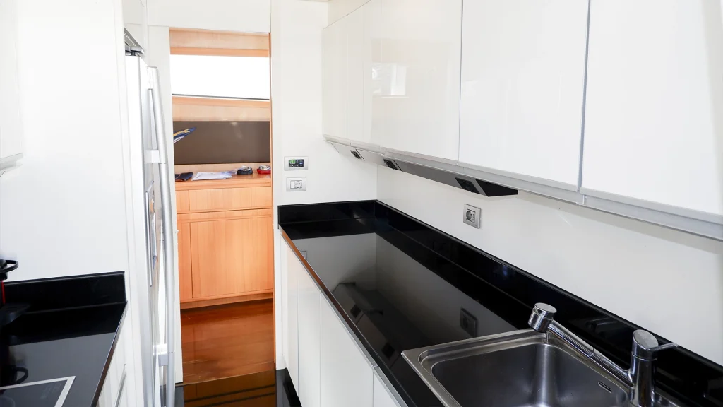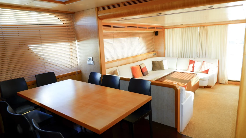 Este Sanlorenzo SL72 Flybridge es, sin duda, uno de los mejores de su modelo. Utilizado muy ocasionalmente durante la temporada, ha sido cuidadosamente mantenido por una tripulación permanente profesional y un propietario muy atento a cada detalle. Refit realizado en 2021, con numerosas mejoras en materiales y acabados. El interior, elegante y contemporáneo, está realizado en madera clara personalizada, aportando una atmósfera luminosa y sofisticada.